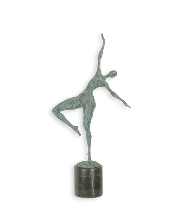 Dit prachtige bronzen beeld toont een elegante naakte figuur met een bijzondere groene afwerking. De warme brons contrasteert mooi met de groene finish, waardoor het beeld een unieke uitstraling krijgt. Perfect om een sfeervolle en artistieke touch aan je interieur toe te voegen. Het beeld heeft een tijdloze elegantie die in iedere ruimte opvalt.Specificaties