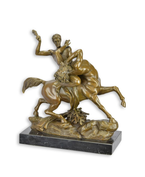 Dit imposante bronzen beeld toont de legendarische held Theseus in gevecht met de centaur Bianor. Het dramatische tafereel is prachtig uitgewerkt in brons en vormt een indrukwekkend middelpunt in je interieur. De gedetailleerde weergave van spieren en beweging maakt dit klassieke mythologische verhaal tot leven. Een tijdloos beeld dat perfect past in elke ruimte waar je van geschiedenis en mythologie houdt.Specificaties