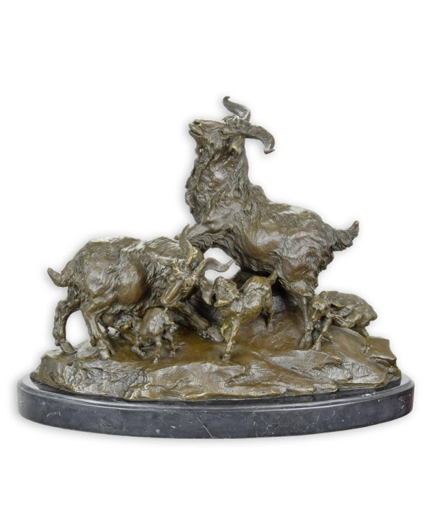 Ontdek het bronzen beeld van een familie geiten, een prachtig kunstwerk dat direct de aandacht trekt in jouw interieur of tuin. Dit beeld, vervaardigd uit hoogwaardig brons, straalt een tijdloze elegantie uit en is bestand tegen de elementen, waardoor het zowel binnen als buiten een blikvanger is. De gedetailleerde afwerking vangt de speelse en zorgzame dynamiek van de geitenfamilie perfect, waardoor je elke keer dat je ernaar kijkt nieuwe details ontdekt. Het warme, rijke brons voegt een vleugje luxe toe aan elke ruimte en vertelt een verhaal van verbondenheid en natuur. Dit beeld is niet alleen een decoratief stuk, maar ook een gespreksonderwerp dat je gasten zal fascineren. Voeg een vleugje kunst en natuur toe aan je omgeving met dit unieke bronzen meesterwerk.Specificaties