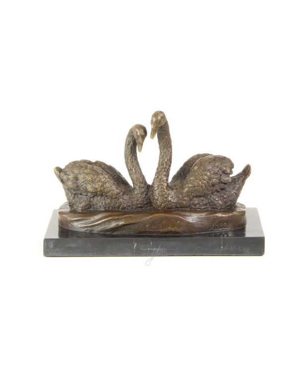 Bronzen beeld van een paar zwanen