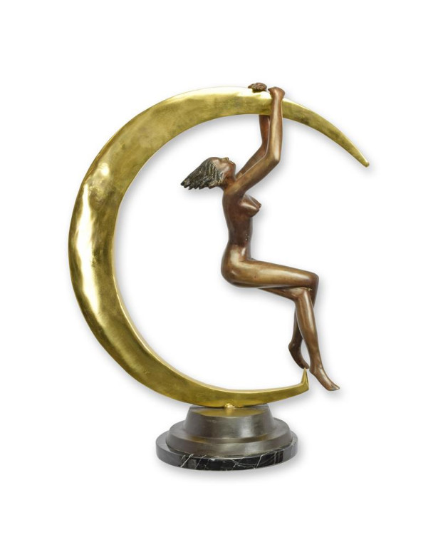 Bronzen beeld vrouwelijk naakt en wassende maan
