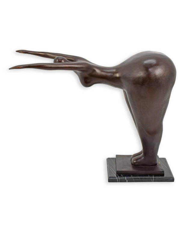 Dit prachtige bronzen beeld toont een vrouwelijke figuur in moderne stijl. Het brons geeft het beeld een warme uitstraling en zorgt voor een tijdloze elegantie in je interieur. Perfect voor liefhebbers van hedendaagse kunst die hun woonruimte willen verrijken met een stijlvol en expressief beeld. De gladde afwerking en verfijnde details maken dit een echte blikvanger.Specificaties