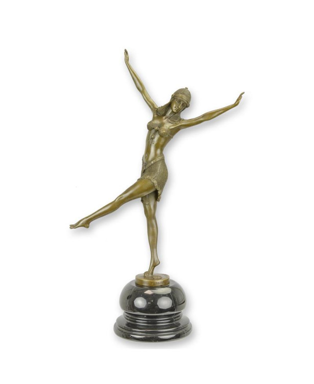 Dit prachtige bronzen beeld toont de elegante danseres van Palmyra in al haar gratie. Het kunstwerk straalt tijdloze schoonheid uit en brengt een vleugje geschiedenis in je interieur. De gedetailleerde afwerking en warme brons kleur maken dit beeld tot een echte eyecatcher. Perfect voor liefhebbers van klassieke kunst en historische figuren.Specificaties