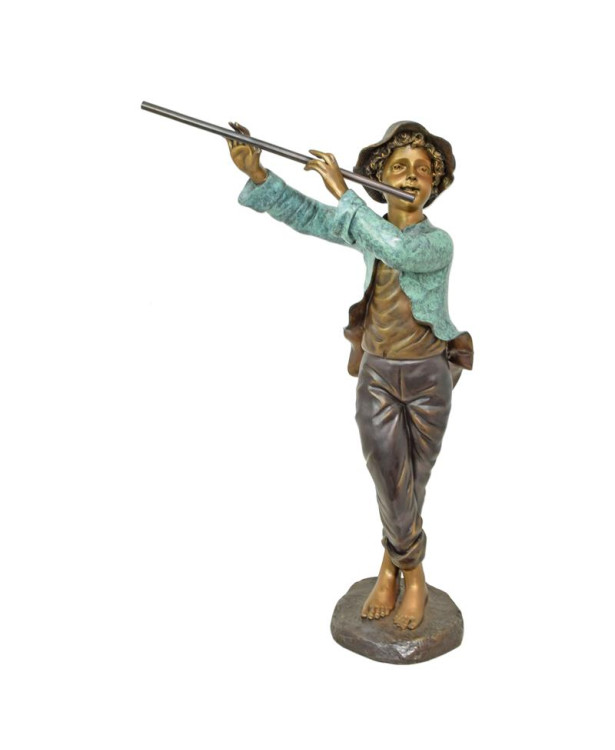 Bronzen jongen speelt fluit beeld