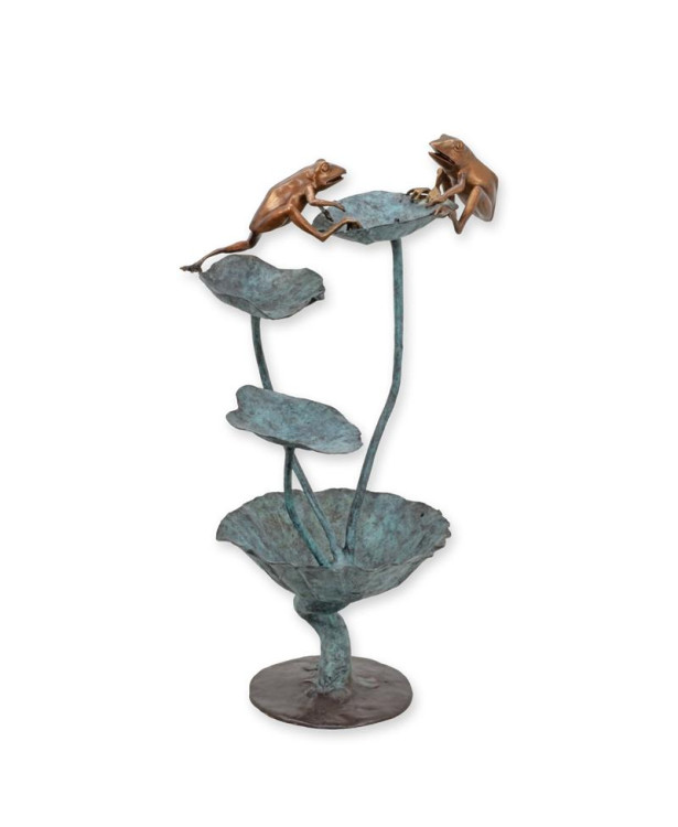 Bronzen kikker beeld met lotusblad