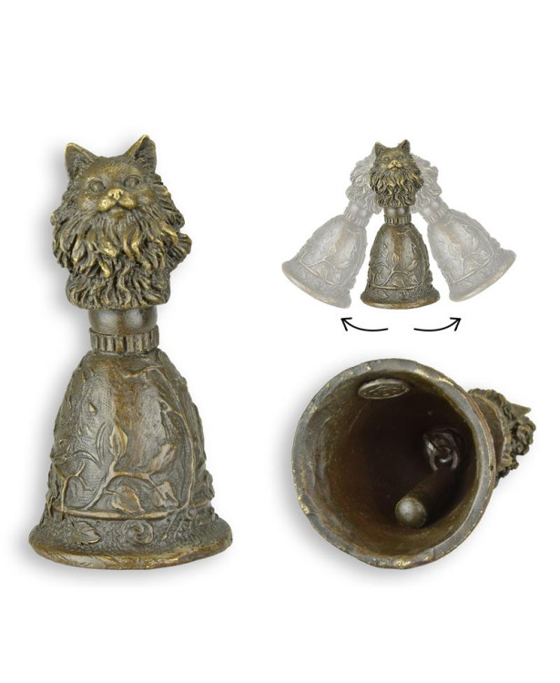 Bronzen tafelbel met kattenkop handgreep