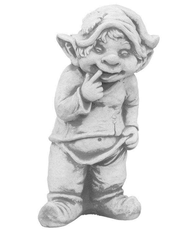 Guitige laaf tuinbeeld. Het beeld is van vorstbestendig massief beton. Met slecht weer kunt u dit tuinbeeld gerust buiten laten staan. Dit guitige Laafje van 10 kg kijkt een klein beetje schaapachtig voor zich uit. Met zijn rechterhand voorkomt hij dat zijn broek afzakt. U kunt de details, zoals de navel van zijn half ontblootte buikje, goed zien. Dit komt omdat het beeld bij de contouren behandeld is met lichtgrijs patina. Het 38 cm hoge beeld zorgt voor een levendige en fantasierijke sfeer in de tuin. Verder heeft dit tuinbeeld als voordeel dat het erg onderhoudsvriendelijk is. Ideaal dus, voor wie van gemak houdt.Specificaties