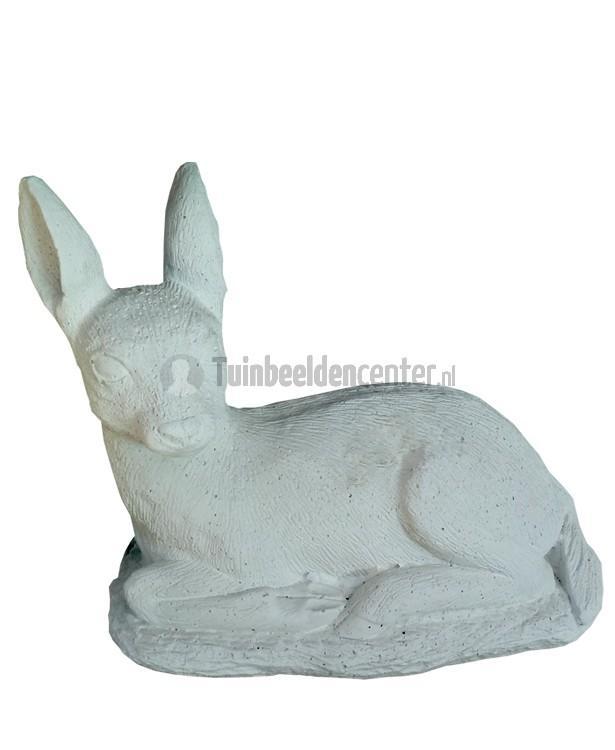 Tuinbeeld van een liggend Bambi hertje. Een van de hardlopers onder de kleinere beelden. Hertjes zijn onder meer bekend geworden door het gelijknamige disney figuur Bambi.