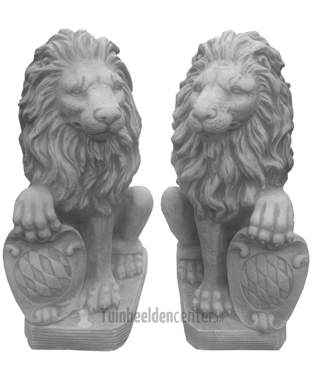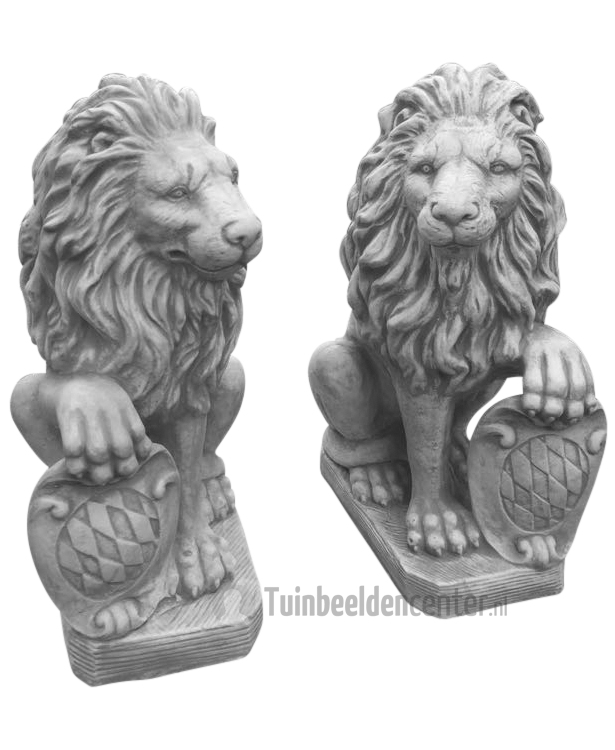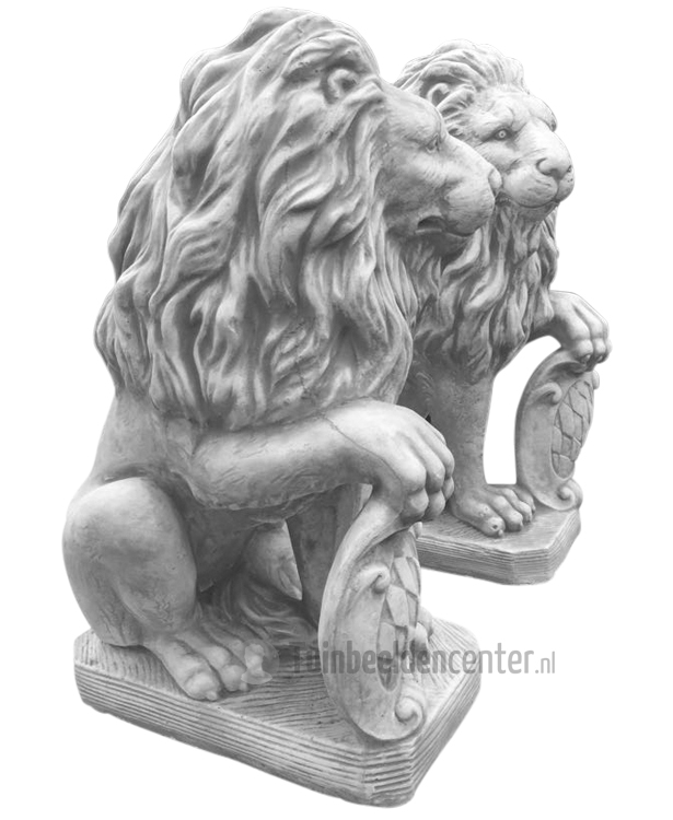 Set betonnen Leeuwen met schild