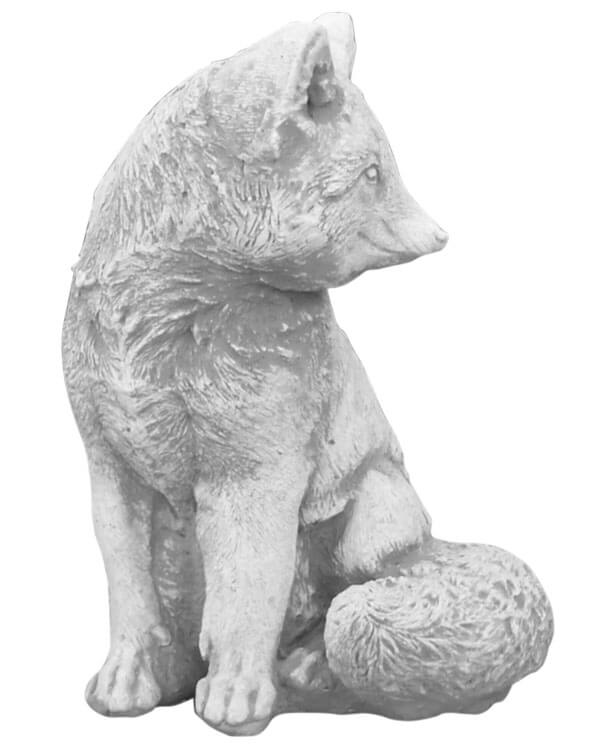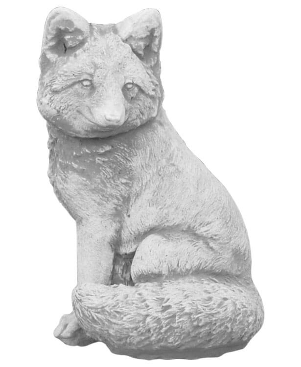 Betonnen beeldje van een zittende vos. Met een hoogte van 30 cm en vervaardigd uit massief en winterhard beton, is dit beeld zowel robuust als stijlvol. De lichtgrijze patina-afwerking zorgt ervoor dat de details van de vos nog beter tot hun recht komen.